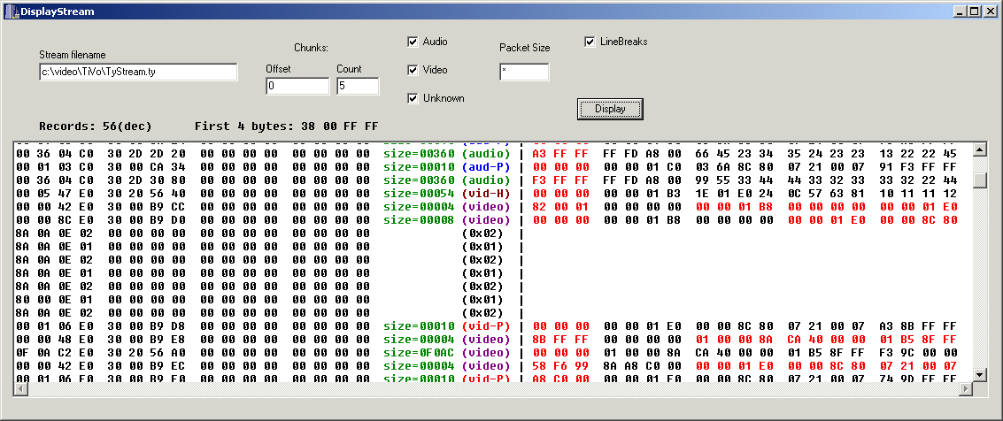 by byte 3 (fourth byte) of the record, which should equal 0xE0 for video. (video, vid-P and vid-H) |