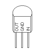 Be aware that the 78L05 in a TO-92 package (chosen because it's phyically smaller) has a pinout that is backward compared to the 7805 in a TO-220 package and compared to the schematic. The drawing to the left shows the correct pinout.