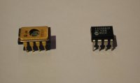 You may use either the PIC12C508 or PIC12C509 depending on which you have laying around. Be warned that they come from the factory with a calibration value loaded into the highest address (01FF for a '508 or 03FF for a '509). This value must not be erased or overwritten!