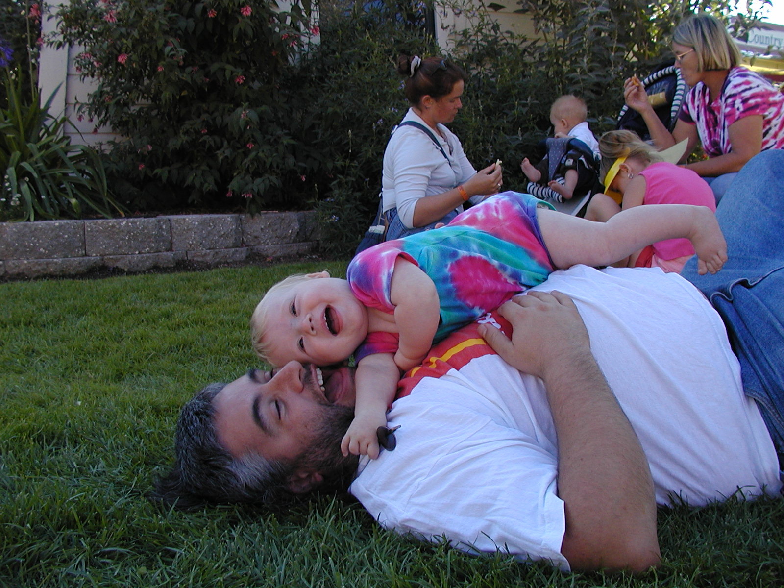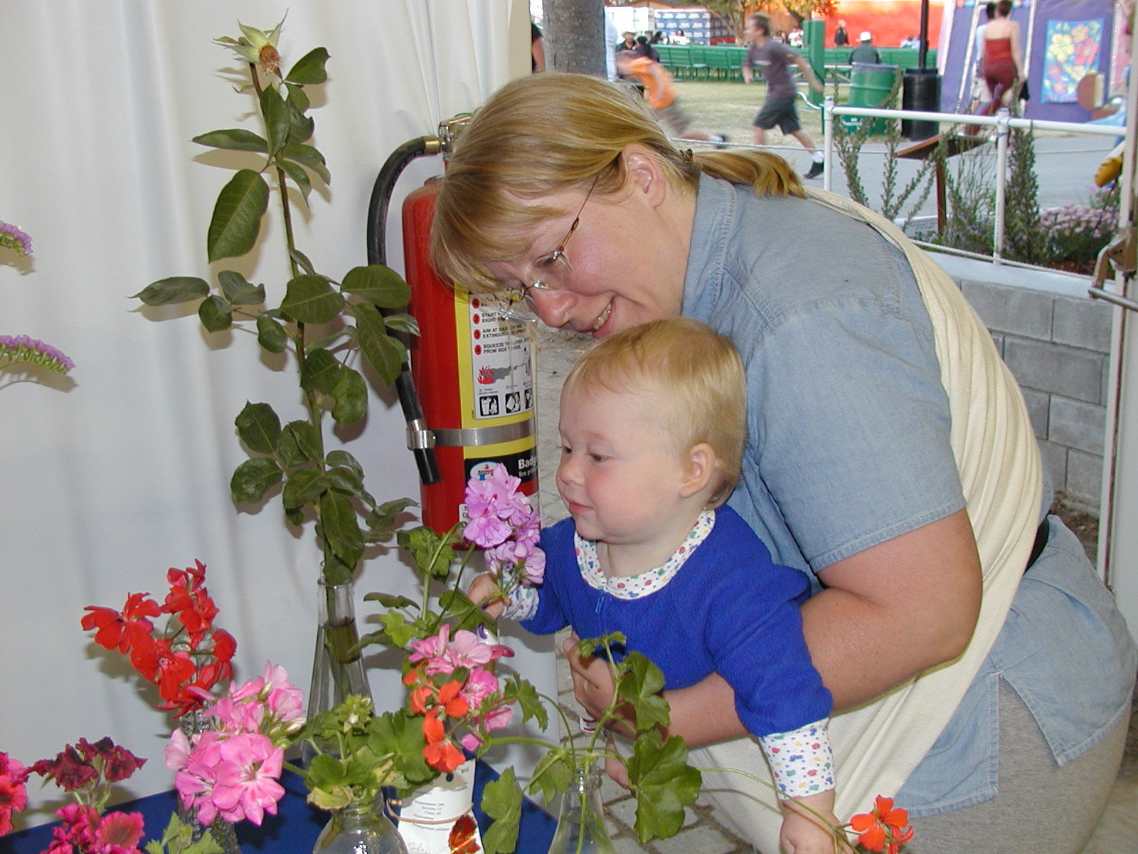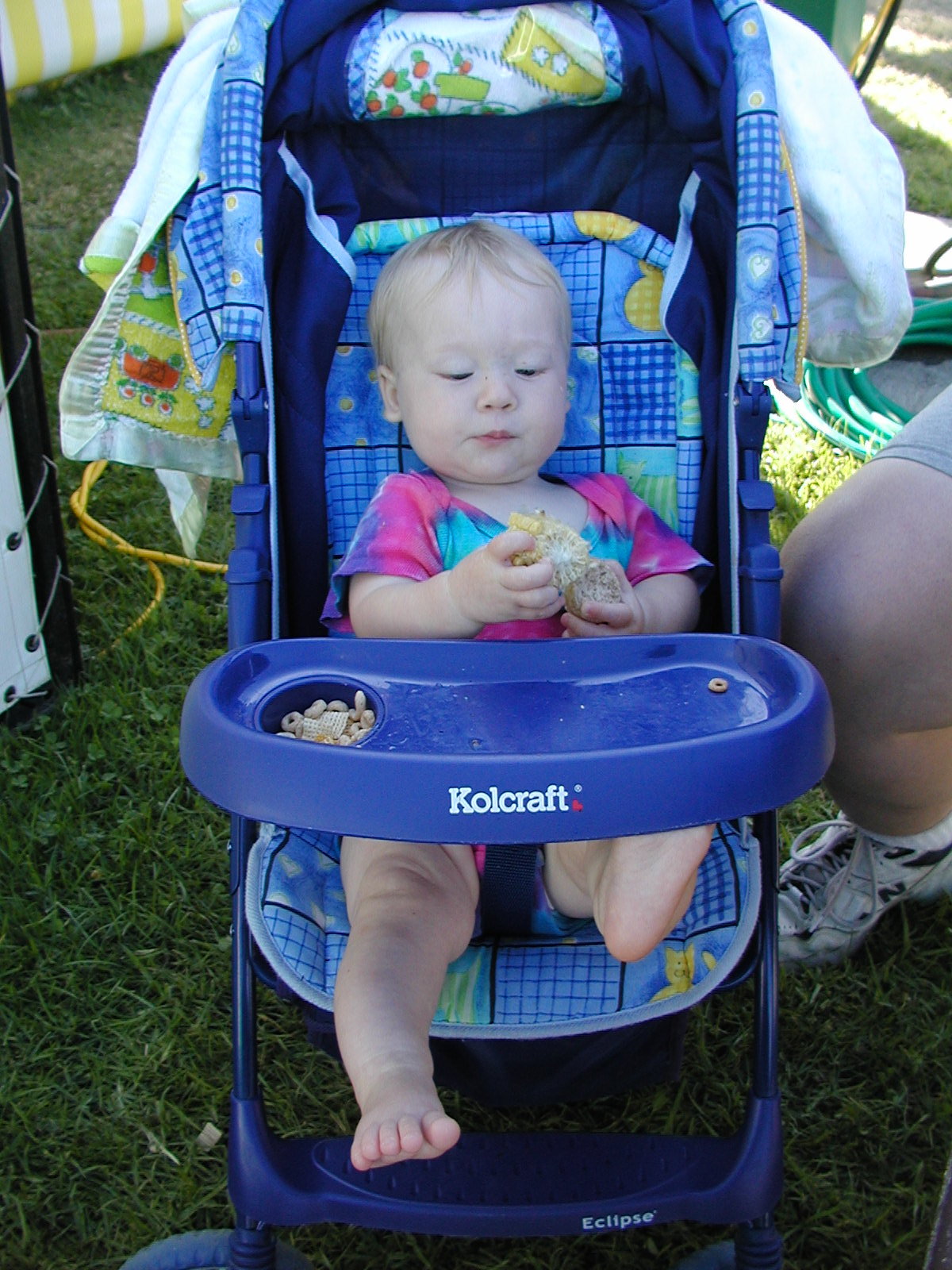 Playing at the county fair. Oddly enough, she seemed to like the poultry barn best. She also enjoyed trying new foods, catching plastic frogs and looking at the floral display. She wasn't quite sure what to do with corn on the cob.