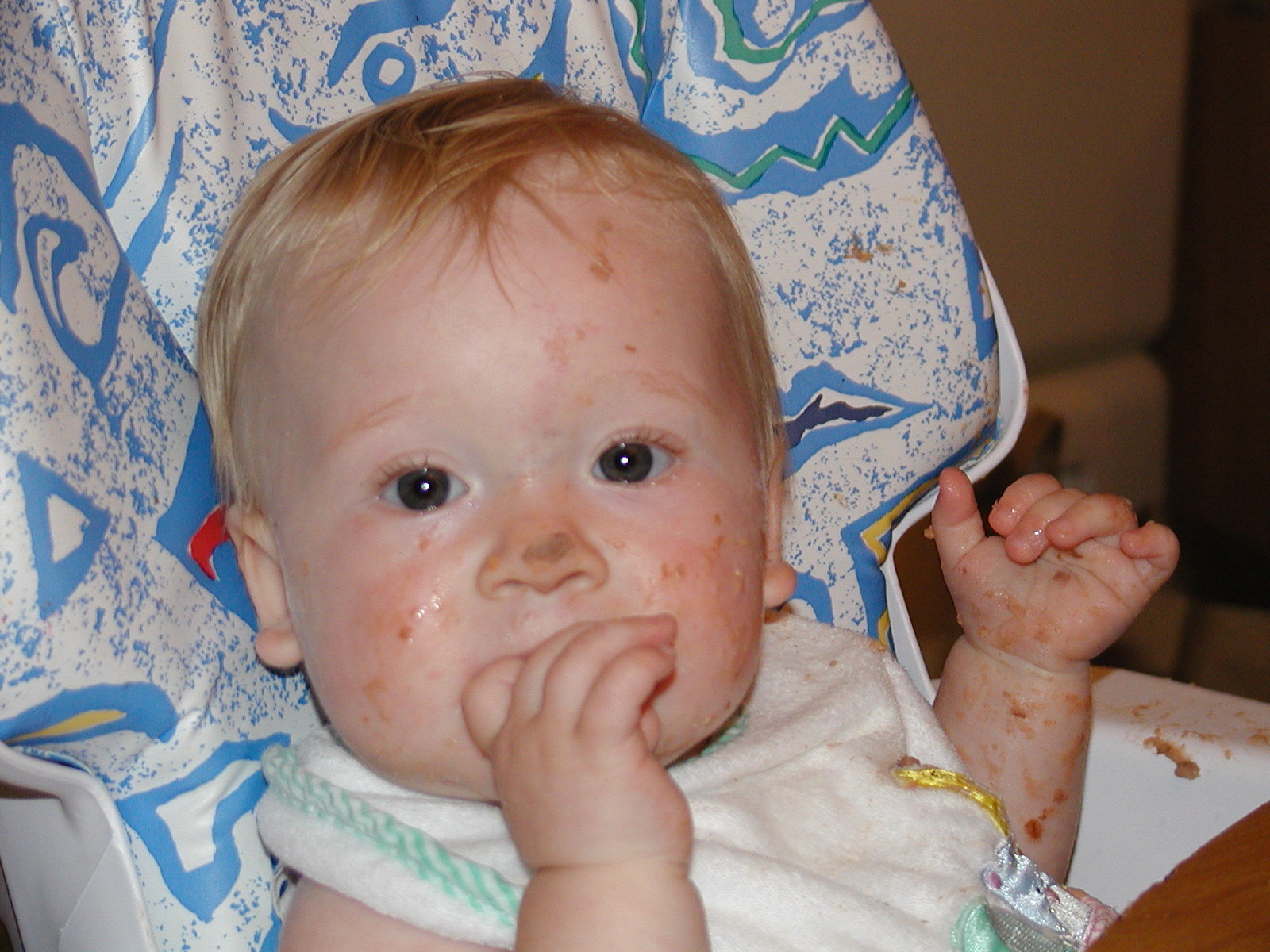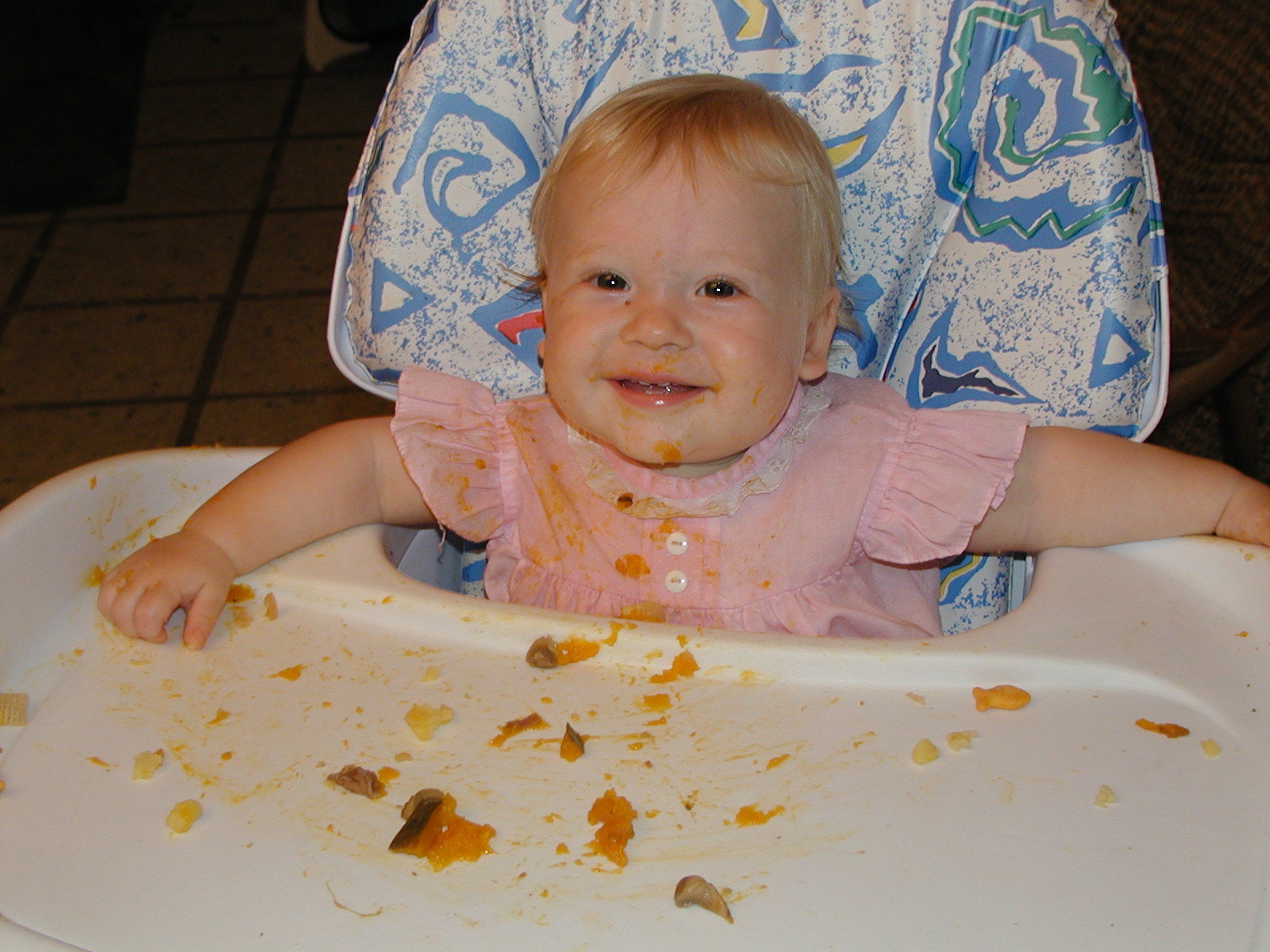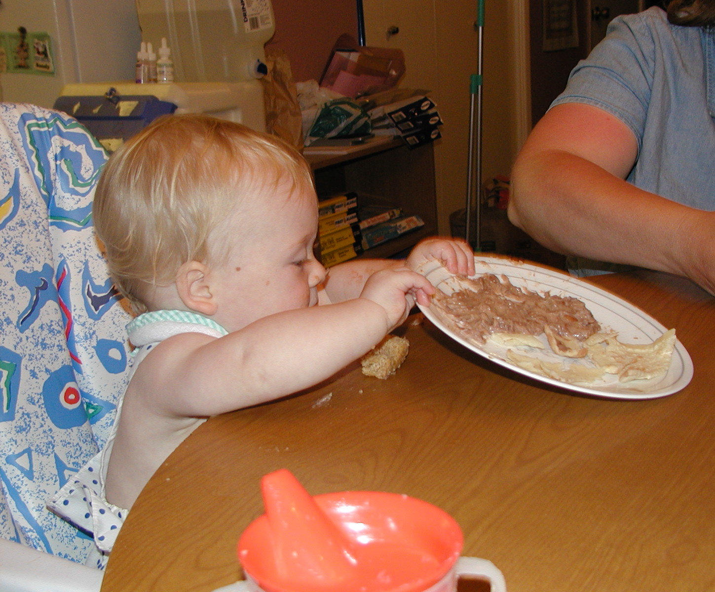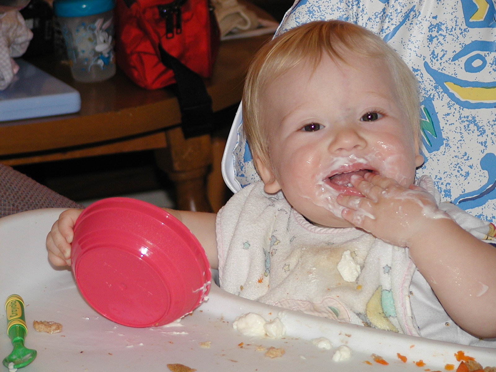 Nadya insists on feeding herself. It's not as messy as I expected, even though her favorites include refried beans and cottage cheese.