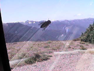 Mountain Nice drive up some well maintained dirt roads, all was well until we were attacked by the killer Deer flies. We were swarmed by them and I do mean swarmed, to the left you will see one of these attack flies. It was like being in an Alfred Hitchcock movie. |