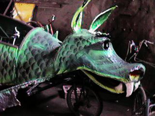 Then things got weird. So now they have this 3 day race in Fortuna and Ferndale over Memorial Day Weekend. People design human powered vehicles that must travel over land, sand, mud and (hold on to your hats folks), WATER. That's right water. Below you will find pictures I took of their collection of winners and losers and just plain funny Kinetic Sculptures.